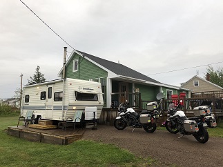 49) We ended our first day of riding the Cabot Trail in Cheticamp on the western side of the island where we settled into a rental camper for the night. Once again we spread out our wet riding gear all over the place to dry. We walked to a nearby restaurant where we had a delicious dinner and then walked around to explore some of the small village of Cheticamp.