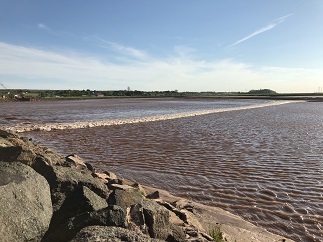 50) We enjoyed a sunny, dry day for the second half to our Cabot Trail ride and then crossed back over to the main island of Nova Scotia to end the day in Truro. We arrived in Truro early enough that we were able to do laundry and still go across the road from our hotel in the evening to watch the Tidal Bore roll up the Salmon River at the Truro Tidal Bore Viewing Visitor Centre. It wasn't the most spectacular sight but it was a captivating natural phenomenon that we were glad we got to experience.