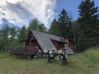 108) Our lodging outside Wilsall, on the edge of the Crazies, was incredible! It was an upscale pack camp cabin that is rented out on a nightly basis when there isn't being used for camp trips. The panoramic view of the mountains was dazzling, a spring trickled down the side of the property and a corral of horses gave us some critters to pet. Finally, our good friend Lyle road his bike up from Colorado to join us for the ride back home.