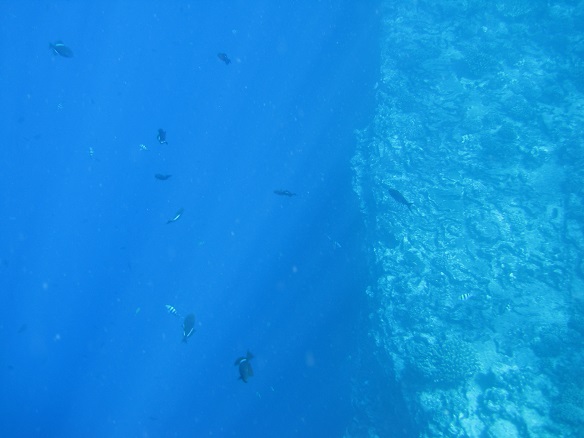 9) The Vert, Lehua Crater, Niihau, Hawaii, August 3, 2022 - Larkin was also playing around free diving down into the deep water to see the side of the coral shelf.