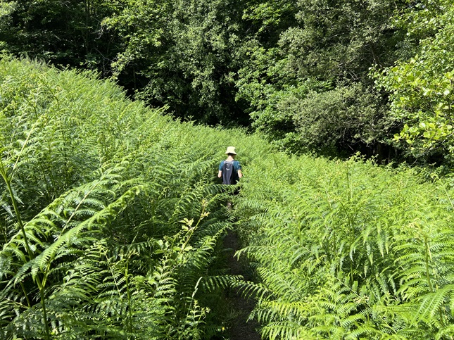 88) Caniça Route (PR10 SEI), Praia Fluvial (River Beach) trailhead, Lapa Dos Dinheiros, Portugal, June 3, 2024 - At the head of the irrigation ditch was a perfect swimming hole surrounded by gorgeous moss covered rocks. Another section contained a little hidden grotto that was straight out of a 17th century mythological painting with moss covered trees, a perfect trickle of a waterfall and a crystal clear pool of water. It was just missing a satyr or faerie to be complete. The quality of the trail was also highly variable with the section along the canal being perfect while some other places were overgrown with head-high grass or ferns.