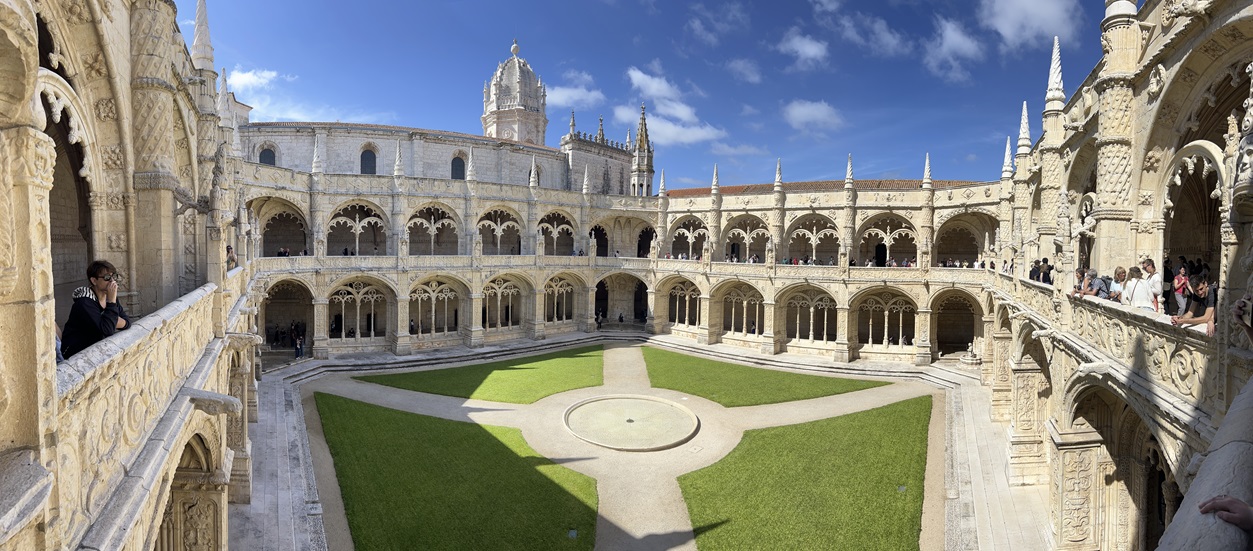 19) Jerónimos Monastery, Lisbon, Portugal, May 26, 2024 - The Jerónimos Monastery is a UNESCO World Heritage Site so the crowd was huge but it is also a gigantic site so it swallowed up the crowd and it wasn’t completely crazy when we went inside. Despite all my hesitancy about big religious sites, from an architectural perspective this monastery was spectacular. Whoever designed the elven buildings in the Lord of the Rings movies must have studied the courtyard from this monastery.