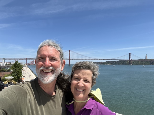 1) Lisbon, Portugal, May 25, 2024 - We have gotten in the habit on our recent trips of doing some sort of city tour on our first day arriving in a new city. This allows us to get an overview of the layout of the city, as well as getting some foundational knowledge of the culture and history. So despite our late arrival at our hotel we were up early ready to explore a new country. We grabbed the usual quick hotel breakfast and then called for an Uber to bring us down to the riverfront. We ended up getting dropped a few blocks from our destination so we got to stroll the waterfront as we navigated to where we needed to be. If Henry the Navigator could build the most detailed maps of his era and Portuguese sailers could follow those to discover new sailing routes around the world then we can use phone maps and walk a little extra. What had us on this mission you might ask? We had booked a guided 3 hour bicycle tour through the hills of Lisbon. Fortunately, the bikes from Lisbon Cycle Tours were ebikes with electric assist (which felt like cheating but sure made the steeper hills a whole lot easier!)