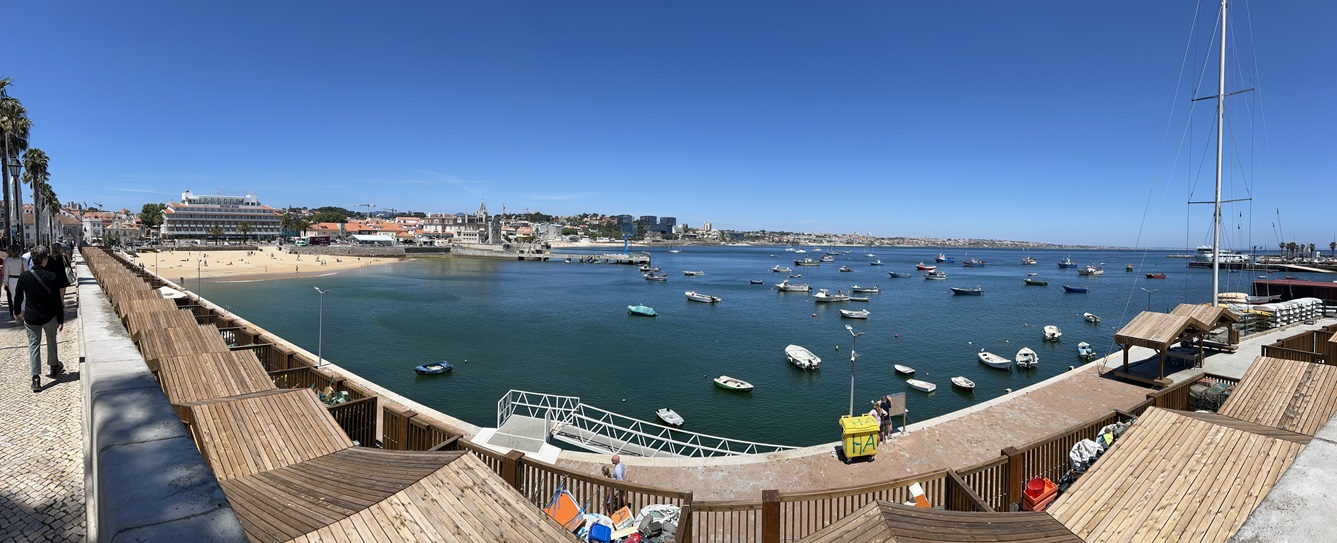 42) Baía De Cascais, Cascais, Portugal, May 27, 2024 - We had some more driving to our final stop. Now we were on the coast and driving east along the string of beaches that line the coast ocean from here all the way back to the mouth of the Tagus River at Lisbon. Our final stop was in the ultra-ritzy city of Cascais. I get that it is a big name when talking about lives of the rich and famous but the place didn’t do anything for me. A tiny beach right on the port and a bunch of over-priced hotels, resorts, restaurants and shops. No thanks. João dropped us off to walk through town but Jonna and I rushed through which got us back to the van early. We drove the rest of the way back to Lisbon with everyone pretty quiet. We’d been on the tour for 7 hours at this point so kind of drained.