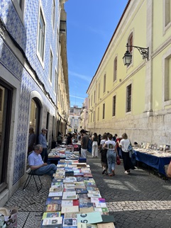 11) Feira de Alfarrabistas, Lisbon, Portugal, May 25, 2024 - From there we went back down to the riverfront to find a Tourist Information office so we could purchase Lisbon Cards which offer free and reduced entry for tons of museums and public transit. It is hard to use one enough to break even on the purchase price but we have found we sometimes can - Lisbon seemed like one of those places... Card procured we headed back uphill but now for an interesting "drive by" site - Livraria Bertrand which is advertised as the oldest operating bookstore in the world (opened in 1732.) Cool to see and it didn’t take much time. Next door was a bustling used book flea market. Another sign of how seriously the residents of Lisbon take their literacy.