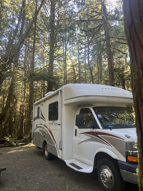 47) Long Beach Campground, Pacific Rim National Park Reserve, Vancouver Island, Ucluelet, BC, October 6, 2025 - Our campsite for the night was in Pacific Rim National Park at the Long Beach Campground. This was one of our favorite campsites of the entire trip. The campsite was large and forested so it felt private despite being surrounded by many other campsites.