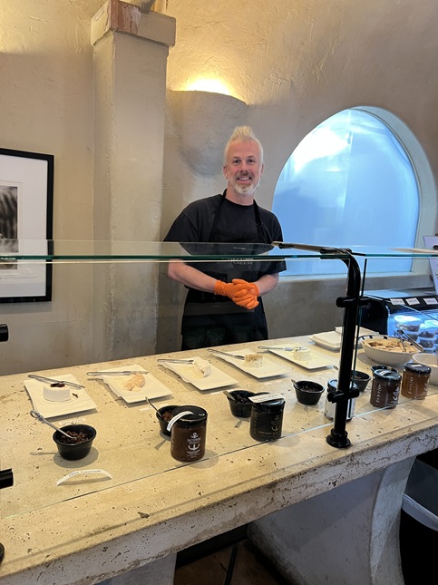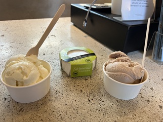 58) Salt Spring Island Cheese, Salt Spring Island, Ganges, BC, October 9, 2025 - In addition to their cheeses, Salt Spring Island Cheese also sells ice cream made from goat milk. We each had a cup and found it delightful! We camped for the night at Mowhinna Creek Campground just outside Ganges, the only town on Salt Spring Island.