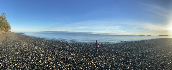42) Rathtrevor Beach Provincial Park, Parksville, BC, October 5, 2025 - We spent our first evening on Vancouver Island at Rathtrevor Beach Provincial Park in a spacious, forested campsite just a short walk from a stone beach looking out onto the sound between the island and the mainland. We enjoyed a lovely evening walk on the beach where we saw gulls, herons, seals and some of the many wild rabbits that inhabit the park.