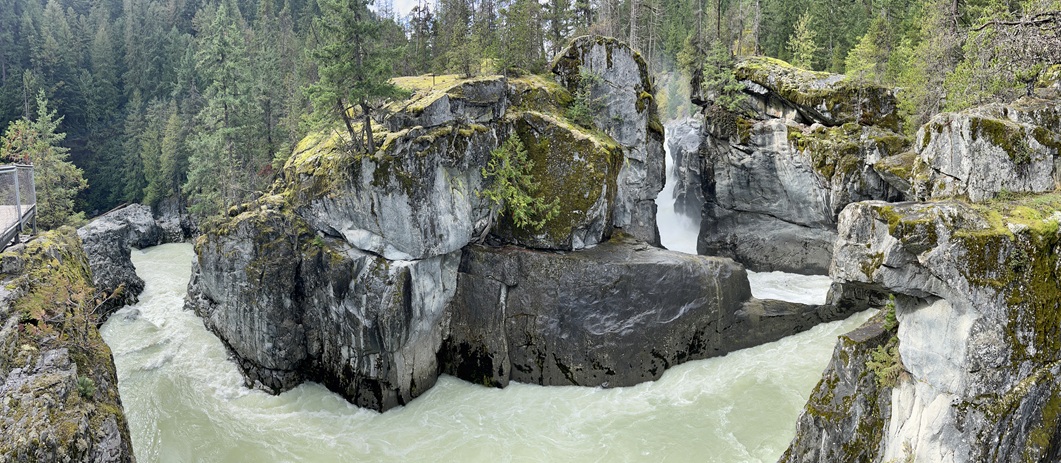 28) Nairn Falls, Nairn Falls Provincial Park, Pemberton, BC, October 1, 2025 - The next day we again turned south (well, technically southwest) ending another zag of our zig-zag path across BC. The road went up into the Pacific Range of mountains and after crossing over a pass we stopped at Nairn Falls Provincial Park to do a day hike to see Nairn Falls.