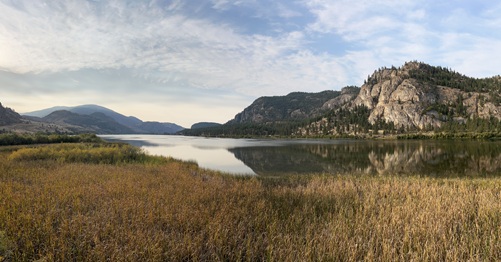 22) Vaseux Lake Migratory Bird Santuary, Okanagan Falls, September 28, 2025 - The next day we continued our trip down the Okanagan River Valley. Our next stop was at the Vaseux Lake Bird Santuary which is really just a parking lot on the side of the road with a boardwalk leading out to a wooden observation tower on the edge of the lake. I think the tower gets used more by teenagers as a place to hangout than by serious bird watchers but we did get a scenic view out over Vaseau Lake and we did see some waterfowl hanging out on the lake so success!