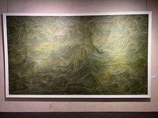 181) Ho Chi Minh City Fine Arts Museum, Sài Gòn, Vietnam, February 28, 2025 - One of our favorite pieces was this huge painting with curving lines which, at a distance, looked like either a topographical map of the country or a thick section of jungle foliage.
