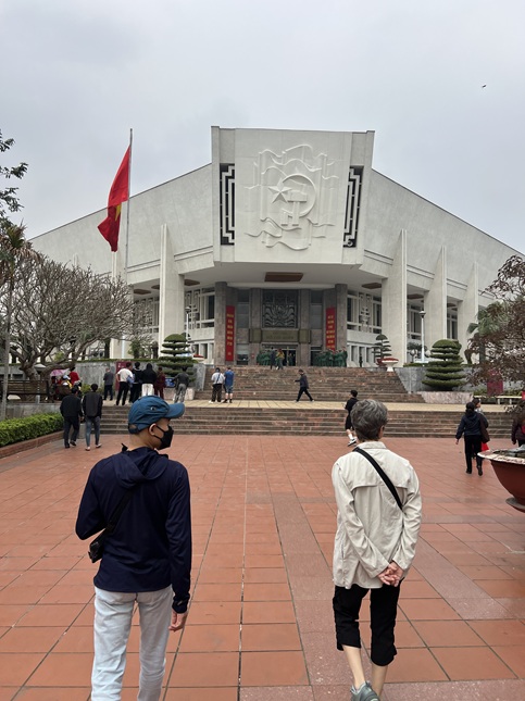30) Bảo Tàng Hồ Chí Minh (Ho Chi Minh Museum), Hanoi, Vietnam, February 13, 2025 - Highly enjoyable just to be in the middle of it all and being self aware of the craziness it represented. The other fun part of being in the whole complex was seeing the reaction of some of the Vietnamese to us two white Americans being there. We had village women from rural parts of Vietnam that were dressed in their finest clothes in order to see "Uncle Ho" that asked us to take photographs with them. Fortunately Tony was there to interpret and explain to us what was going on. Then, when we were in the museum the kids were so excited to see us they swarmed around us 2 and 3 kids deep to get high fives and fist bumps. Even some of the teachers and, even more surprisingly the soldiers, got in on the parade past us for high fives. See, surreal!