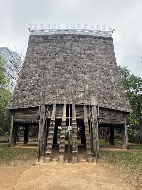 46) Bảo Tàng Dân Tộc Học Việt Nam (Vietnam Museum of Ethnology), Hanoi, Vietnam, February 15, 2025 - This museum is dedicated to the 54 different ethnic groups that make up the people of Vietnam. From the numerous hill tribes to the coastal fishing communities to the floating river villages of the Mekong Delta and then the dominant Viet people who make up most of the big cities. In addition to a big, two-story building divided into 54 sections (one section dedicated to each unique ethnic group) there is also a large park that contains 20 different clusters of buildings showcasing the homes, communal buildings, farm buildings and religious structures for many of the different groups. Inside the museum the display area for a given ethnic group highlighted the unique language, clothing, spiritual beliefs, cultural items (like music, crafts, hunting/fishing/farming), social/political structures, food and family activities associated with each ethnicity. Additionally there were two areas for special exhibits - one that had a collection of woven textiles from one specific group and the second that had a display about the history of elephant domestication (before it was outlawed).