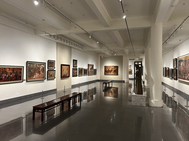 48) Bảo Tàng Mỹ Thuật Việt Nam (Vietnam National Fine Arts Museum), Hanoi, Vietnam, February 15, 2025 - We called for another ride share and took another trip back towards the more touristy area where we got dropped off in front of the Vietnam National Museum of Fine Arts. This art museum is housed in a complex of buildings that was built by the French just before WWII as a Catholic Girls school. In the 1960s, in the midst of the American War, it was turned into a national art museum dedicated to Vietnamese artists which it continues to be to the present. It was a fascinating collection of art. From 1000 year old Buddhist statues to pre-colonial painting to European inspired styles (like Impressionism and Cubism) to war images and Propaganda posters.